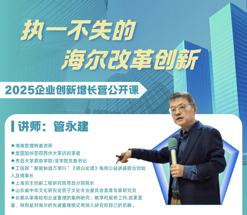你是否好奇,海尔如何从一家濒临亏损的小厂,一步步成长为全球白电行业的领军者?又是否想深入理解,北大张维迎教授口中“能把不可能变为可能”的企业家精神,究竟蕴含着怎样的内核?本周六,学院邀请到了管永建教授为大家进行一场聚焦海尔发展案例与企业家精神的专题讲座。